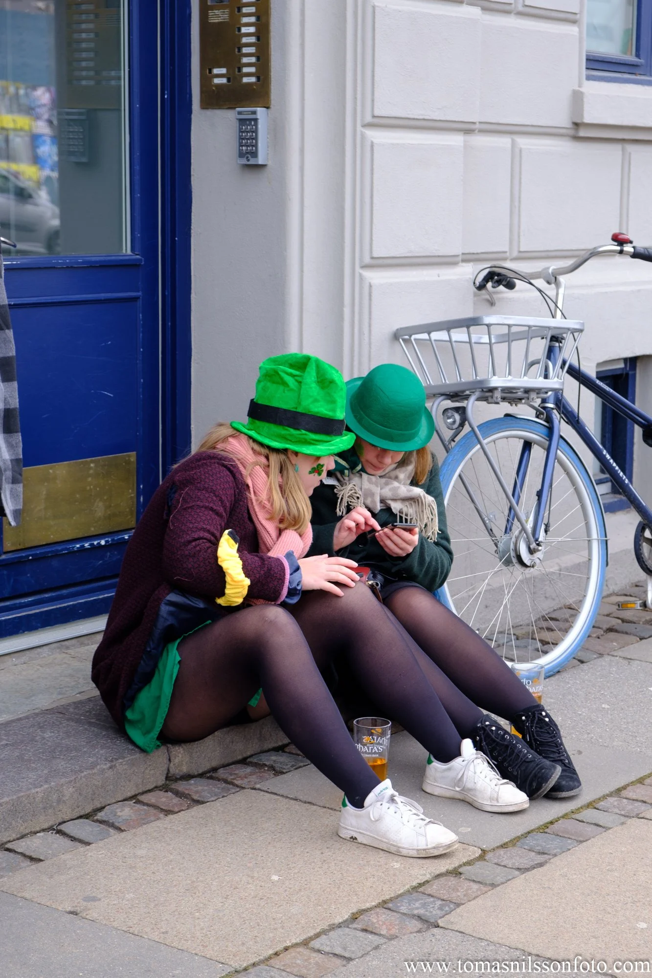 We started as always with the Shamrock Love Three-Legged Charity Race, a tradition in Copenhagen since the early 2000s. I’ve always enjoyed photographing this slightly bizarre, but fun event where two runners get tied together to form a three-legged, often quite unwieldy “creature” that is then sent on its way through the streets of Copenhagen on a 2.5 kilometer run (or walk, or hobble…or crawl) between a few pubs before landing at The Dubliner, the biggest Irish pub in town, where the mood and crowd is always quite upbeat on St.Patrick’s Day.